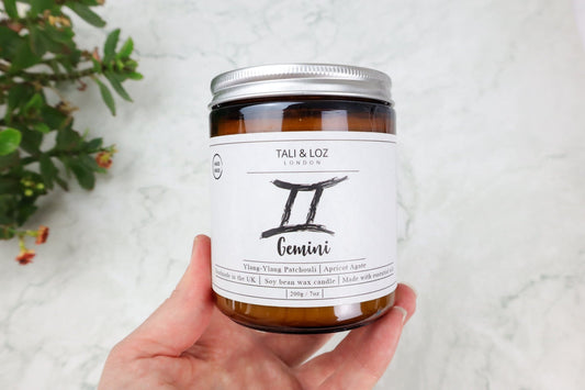 Gemini Candle with Apricot Agate - Tali & Loz Crystals