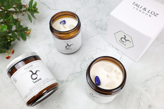 Taurus Candle with Lapis Lazuli - Tali & Loz Crystals