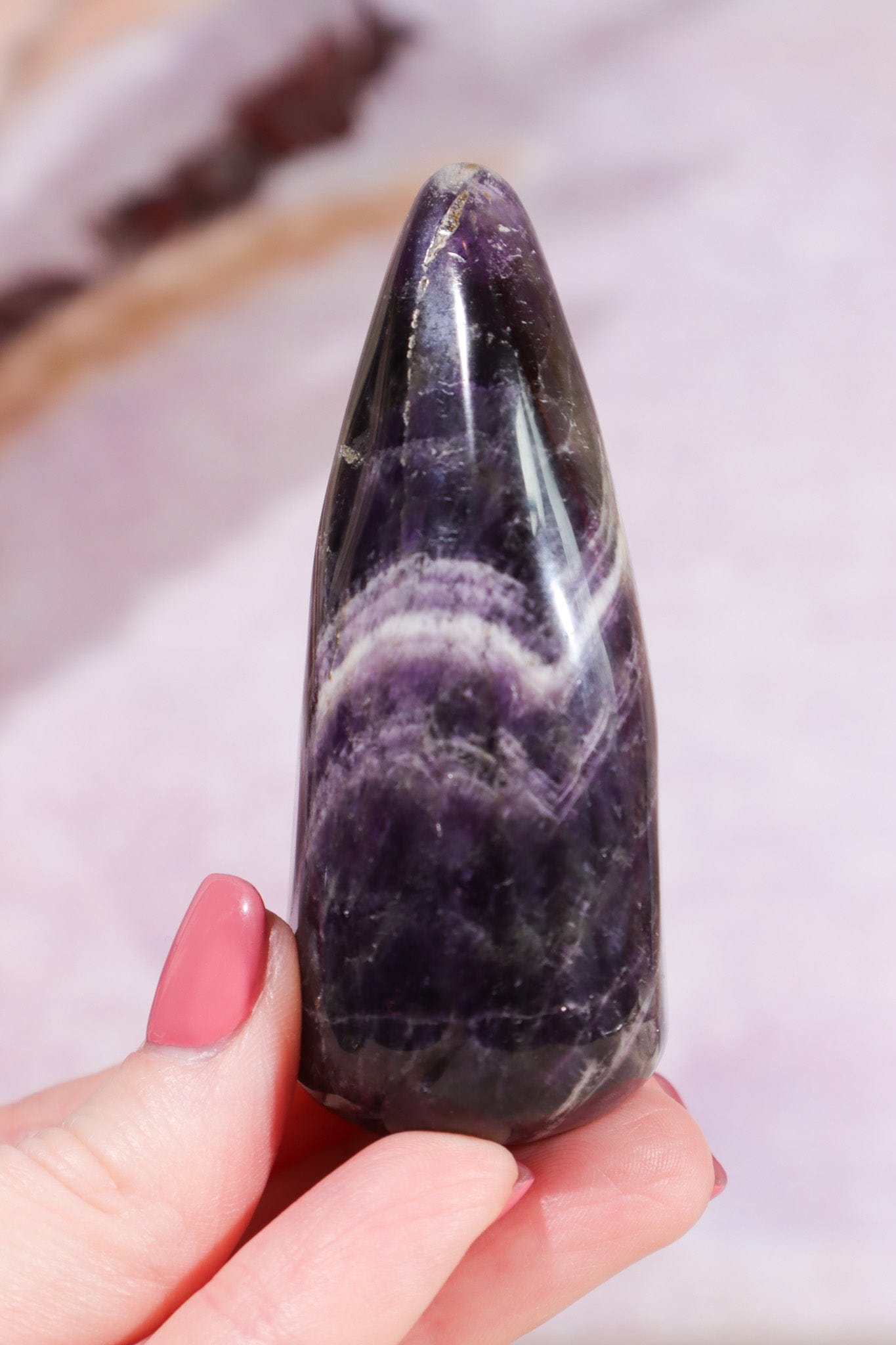 If you like to meditate you can lie down and place the stone on your third eye, or if you are sitting cross legged you can place Amethyst on top of your Crown Chakra. Keeping it under a pillow at night can promote quiet, recuperative sleep and prevent nightmares.