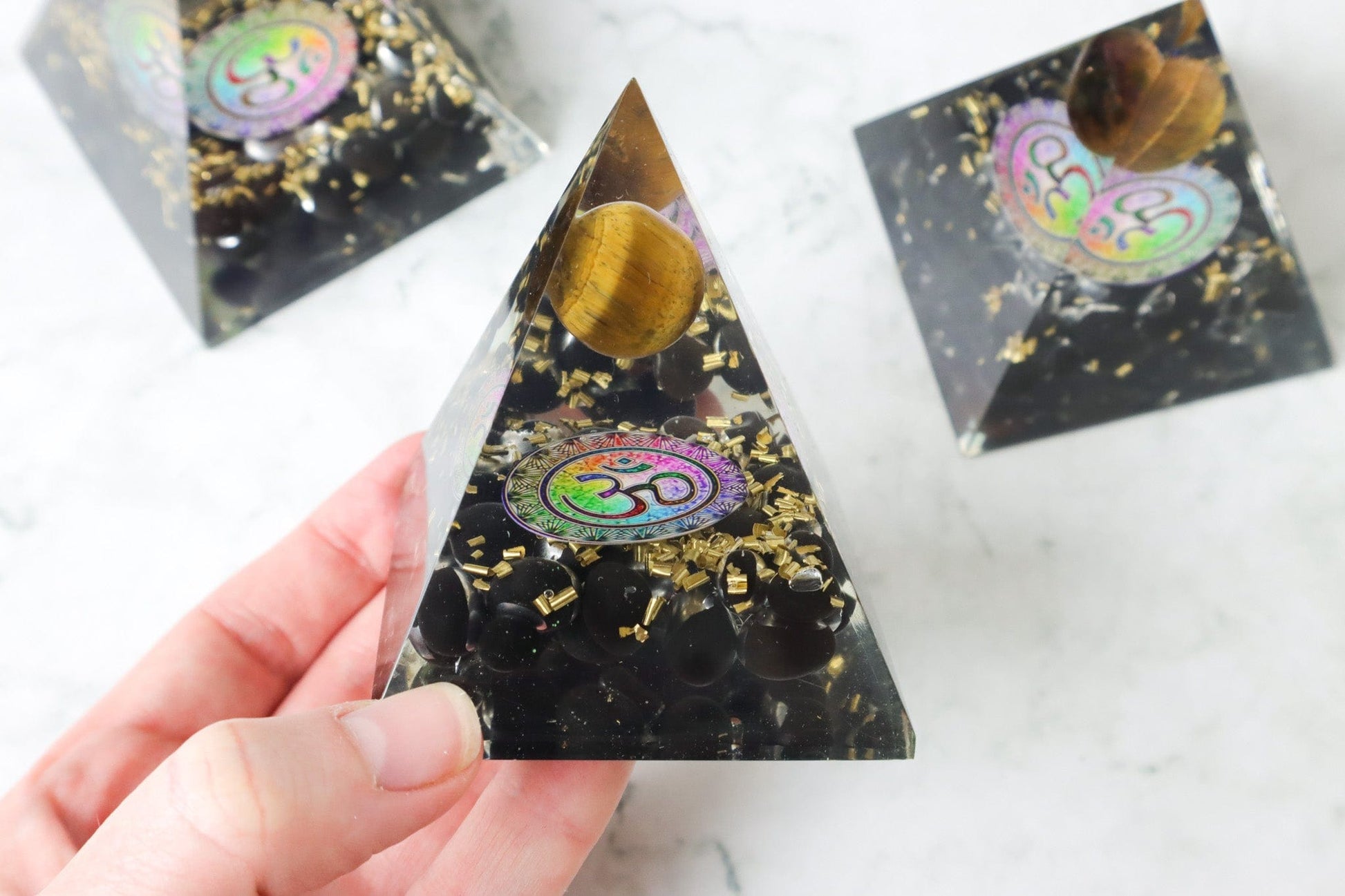 Orgone pyramids are designed to manipulate and strengthen energy of its surroundings as well as the crystals in them. This Orgone pyramid is very easy to place anywhere in your house with its protective and grounding energies, however the office is our favourite place!