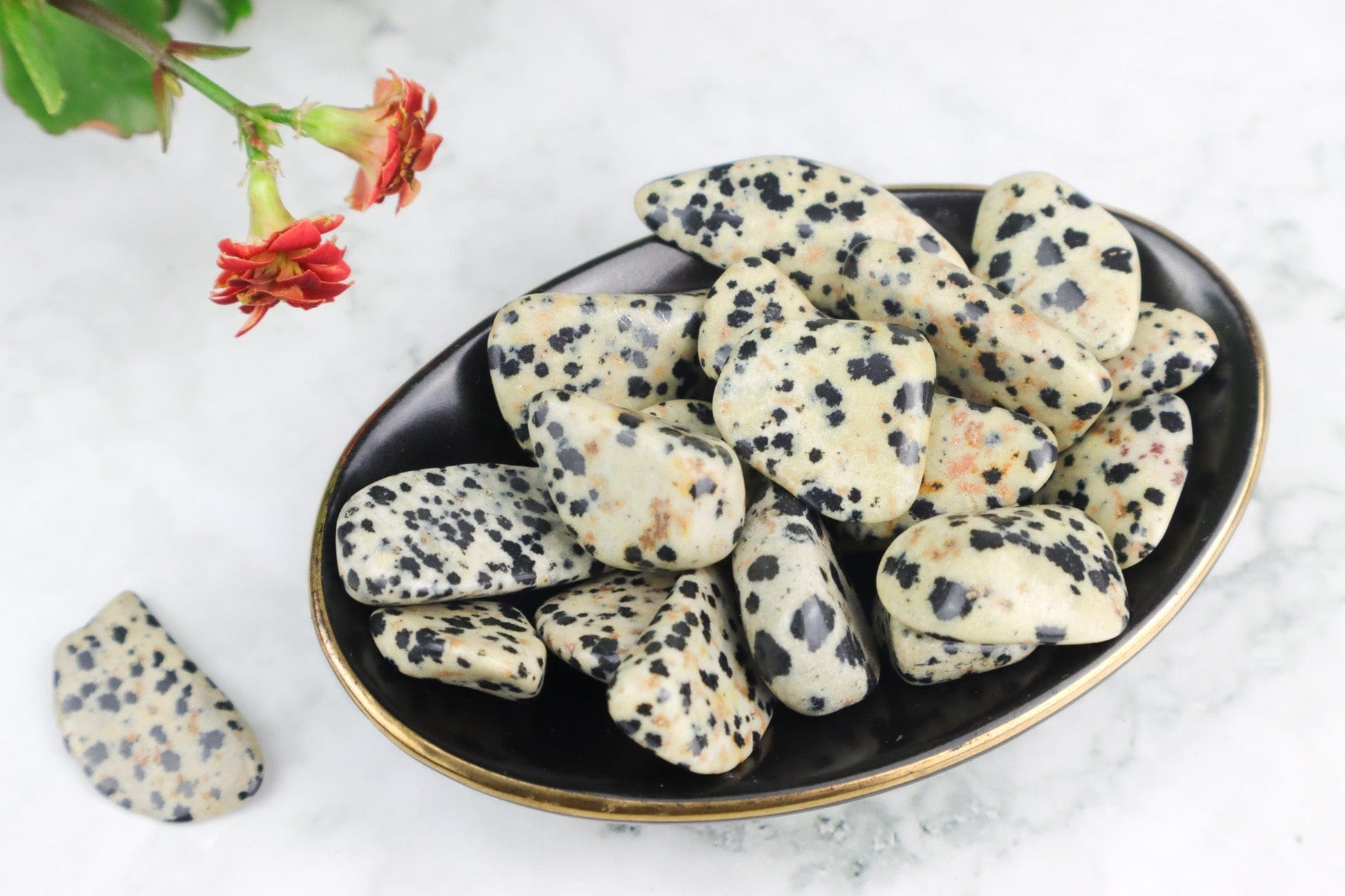 Dalmatian Jasper is a pleasure to look at and hold. Formed from feldspar and quartz minerals, Dalmatian Jasper is often found in igneous rock formations, typically in regions such as Mexico, Brazil, and the United States. Historically, it has been used as a talisman for protection during travel, as well as for enhancing creativity and boosting confidence. The name of this stone was decided due to the ways it resembles the fur of a Dalmatian dog that is speckled with black and brown spots. The black spots are usually Black Tourmaline or Biotite that are also linked to your Root Chakra, providing spiritual grounding and psychic protection.