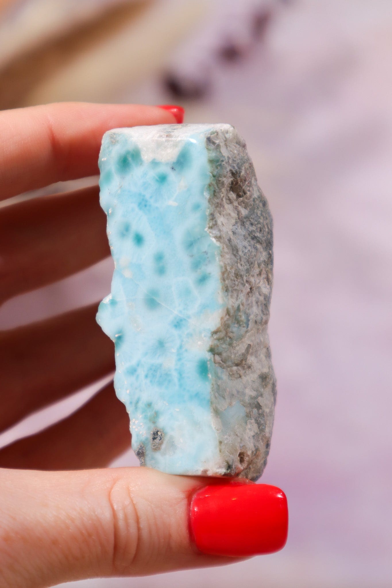 Larimar is an enchanting stone that stands for true, honest and heartfelt communication. Known for promoting a connection to feminine power and divine feminine energy, it supports states of confidence, relaxation, and emotional release.
