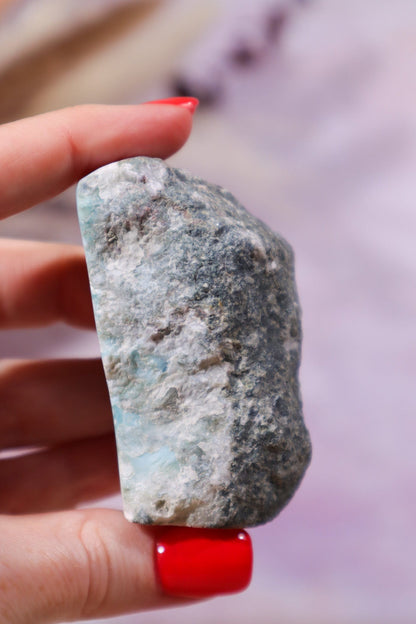 Larimar is formed through a combination of volcanic activity and hydrothermal processes, and is primarily composed of pectolite, a sodium calcium silicate mineral. It owes its distinctive blue colour to the presence of copper impurities.