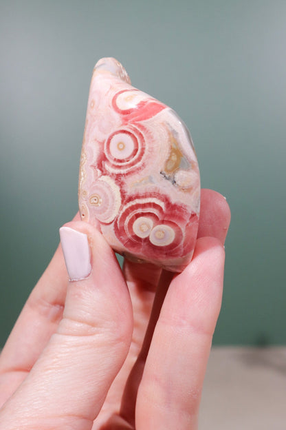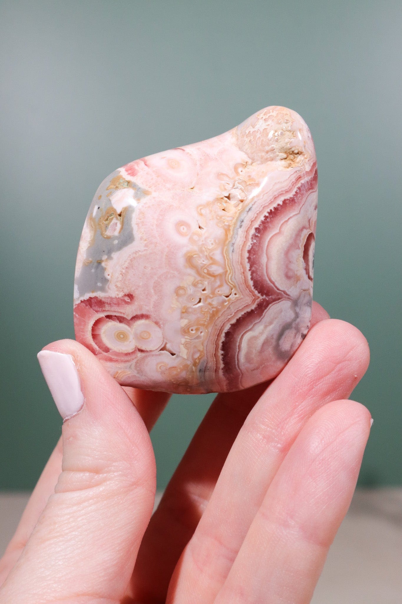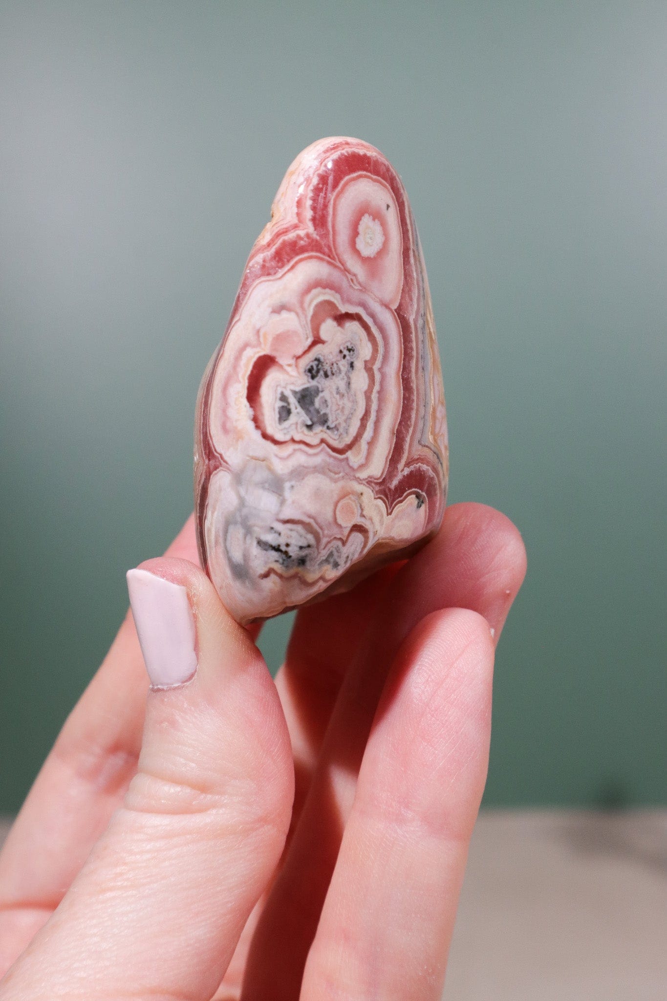 Rhodochrosite is a Heart Chakra stone that encourages self-love, compassion, and emotional balance. It helps heal past traumas and fosters a deeper connection with oneself and others. Its energies resonate with the Solar Plexus Chakra as well, boosting self-confidence and personal power. Rhodochrosite is a very energetic and spiritually active crystal that works wonders to support and heal emotions, and aid in the stimulation of love and compassion towards yourself and others.
