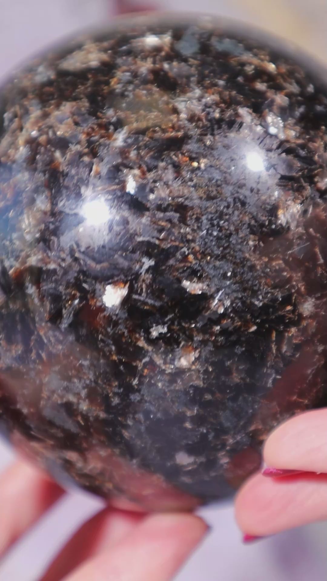 Rich, radiant and full of star-like flashes, This 1.92 kg Astrophyllite sphere is a mesmerising statement piece for collectors and energy workers alike.