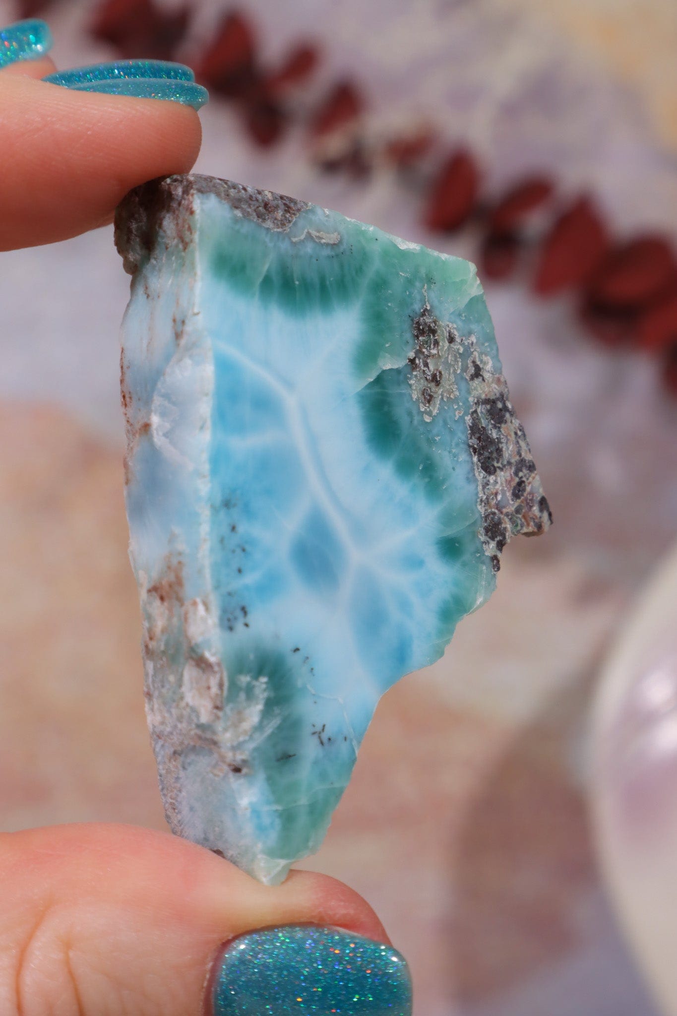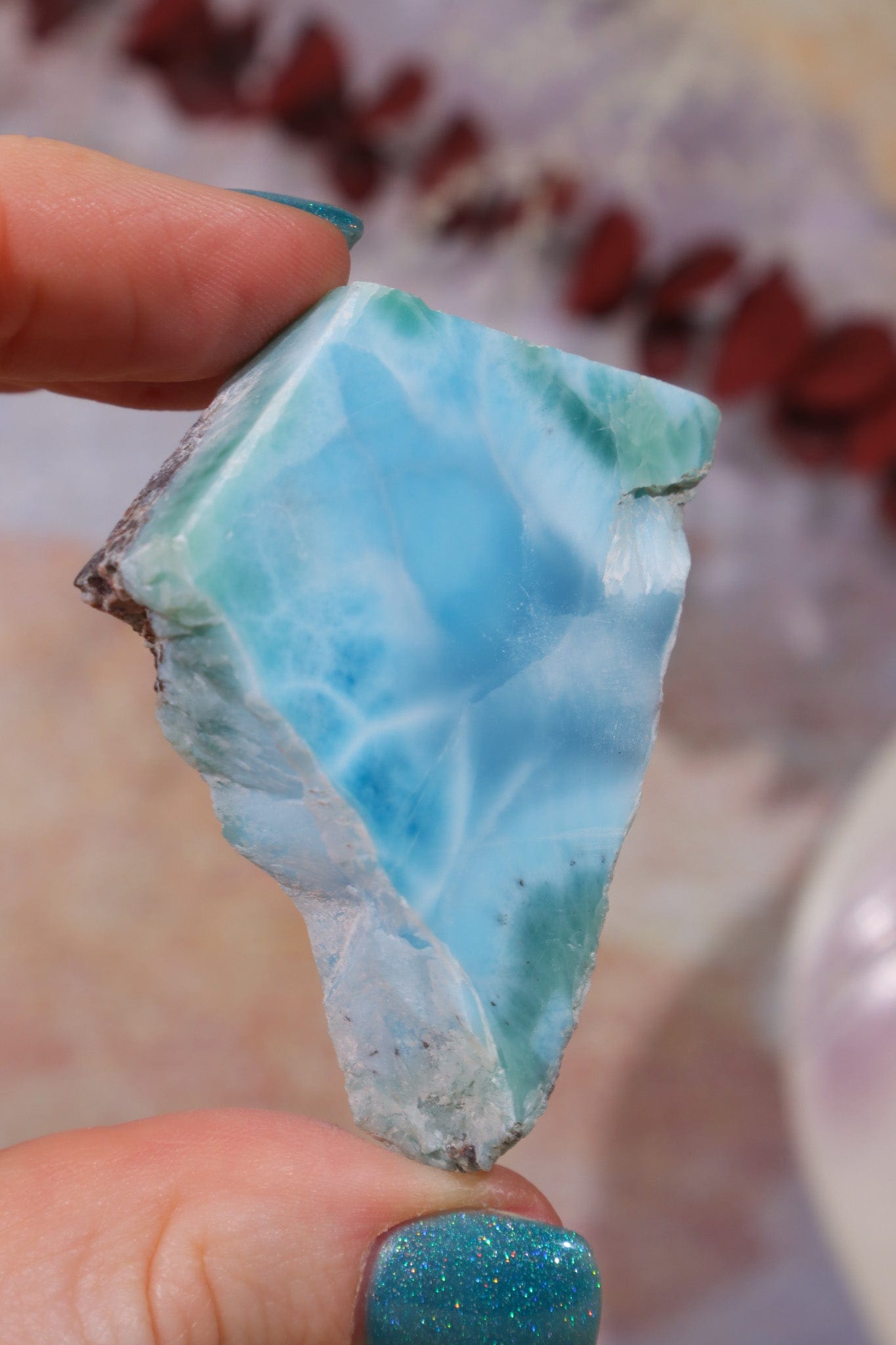 Larimar is an enchanting stone that stands for true, honest and heartfelt communication. Known for promoting a connection to feminine power and divine feminine energy, it supports states of confidence, relaxation, and emotional release.