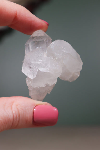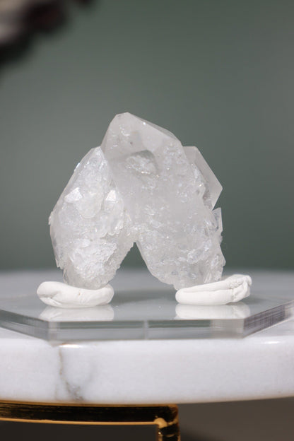 Two high quality Apophyllite points unite, embracing a third, fusing together in perfect harmony. This specimen includes the stand shown in the photos. The Apophyllite can be easily detached, allowing you to display it according to your preference. Apophyllite is a master energy stimulator and is often used as part of a crystal grid to enhance your connection to the universe and contribute to spiritual growth.