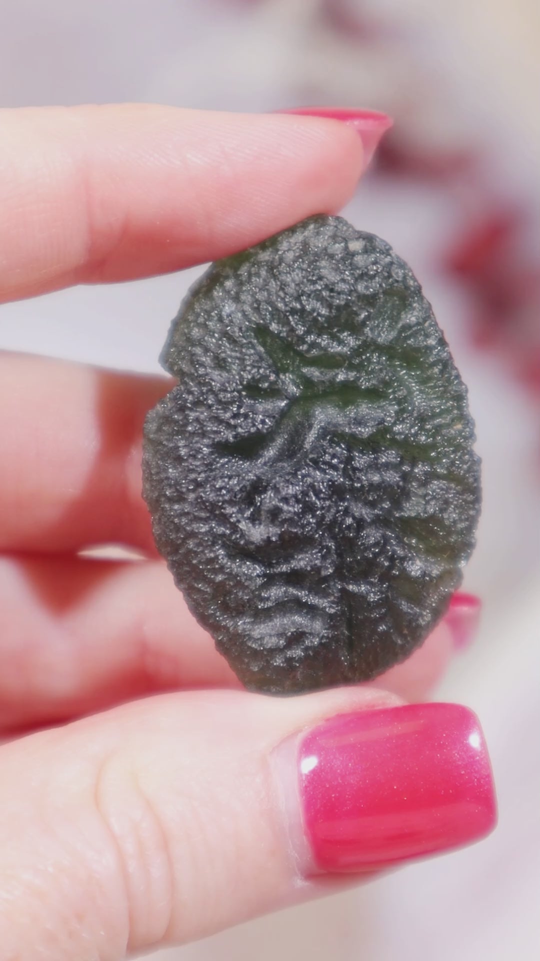 Moldavite, also called Vltavin, is a tektite or "terrestrial debris" that found its way onto Earth after a meteoric explosion about 15 million years ago at the Nördlinger Ries Crater. The gorgeous texture of Moldavite is a result of pervasive etching by naturally occurring CO2 and humic acids present in groundwater. Spiritually known as the ‘The stone of transformation’, Moldavite is a stone that finds you when you are ready for the next step in your life's journey. This tektite drives you to dive deep within yourself and affords you the ability to observe with clarity and purpose.