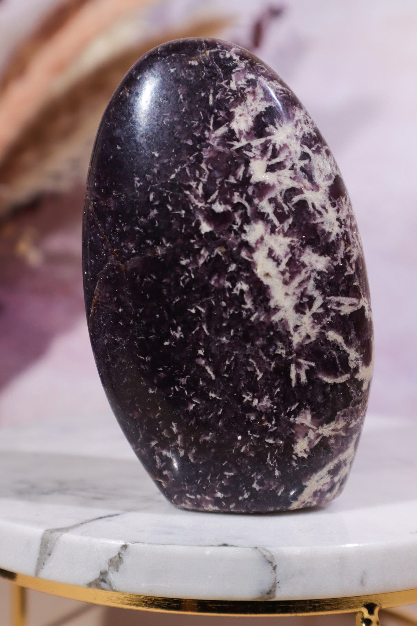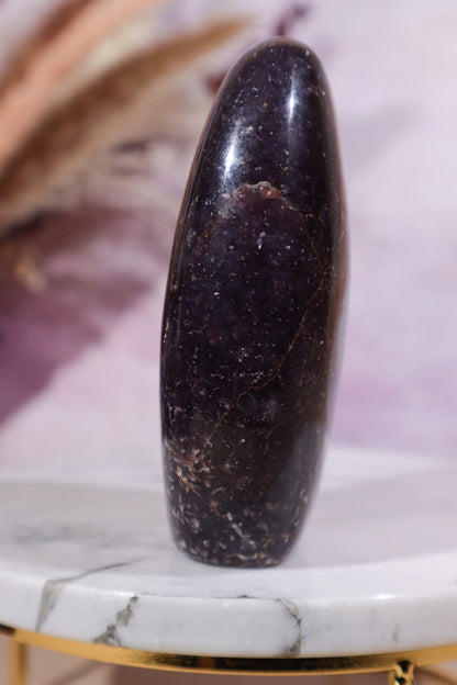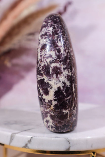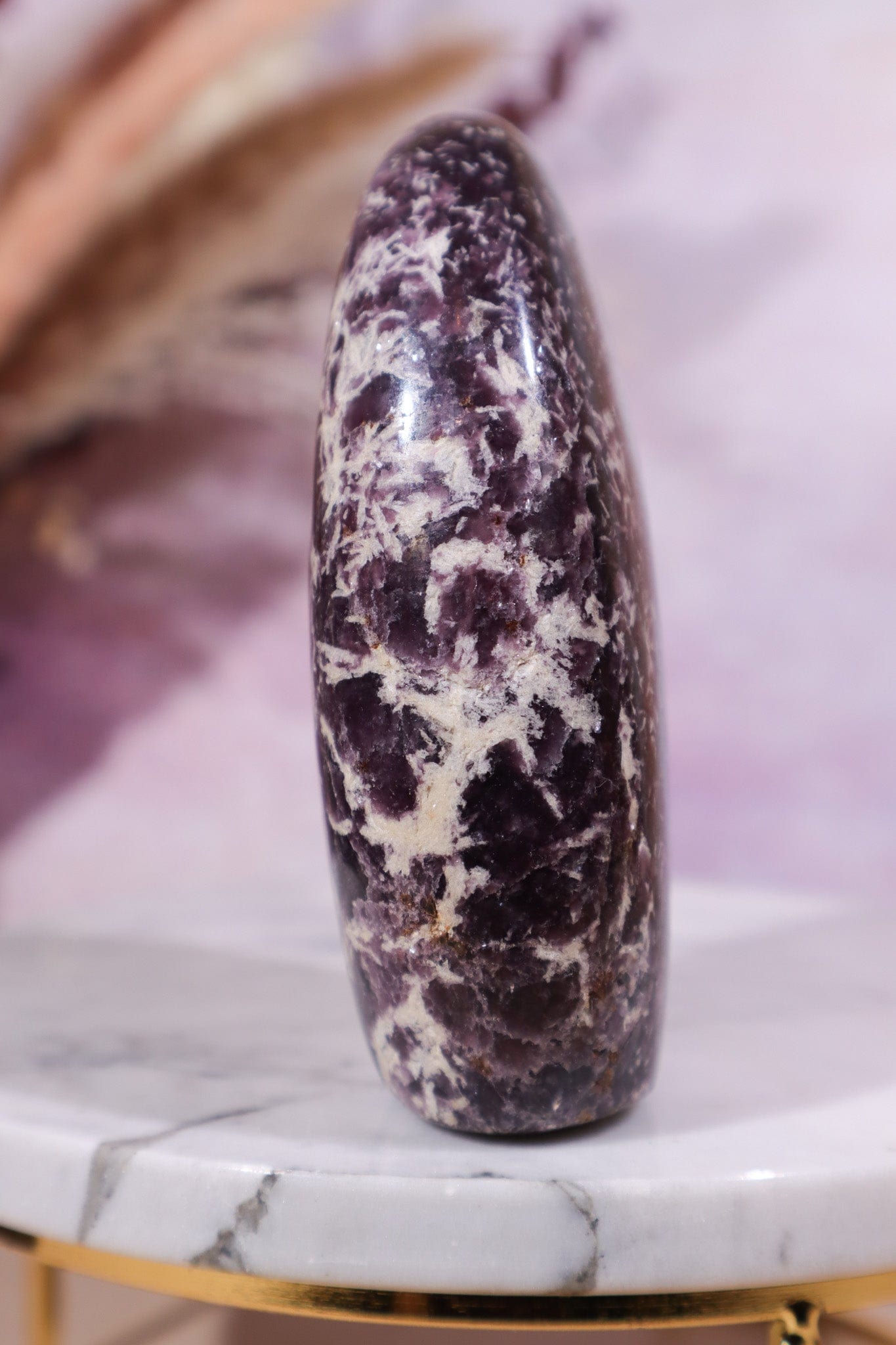 Lepidolite, with its captivating shades of purple, pink, and lilac, is not merely a stone but a companion through life's transitions. Known as the 'stone of transition' or the 'grandmother stone', Lepidolite emanates a gentle, nurturing energy that soothes the soul and comforts the heart. Lepidolite is primarily composed of Potassium, Lithium, Aluminium, and Silicon, along with traces of other elements. Its lavender to purple colour is caused by the presence of Manganese.