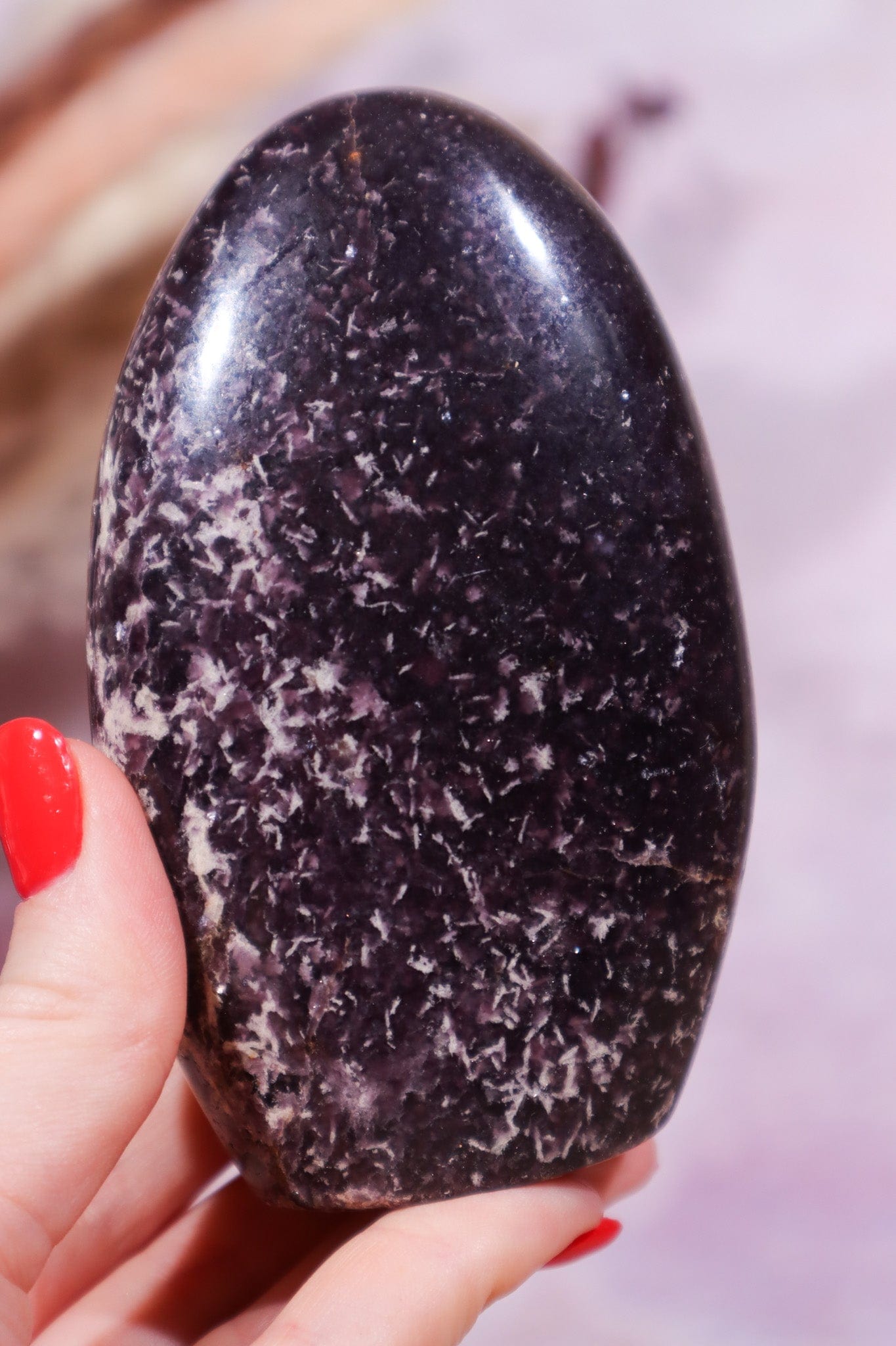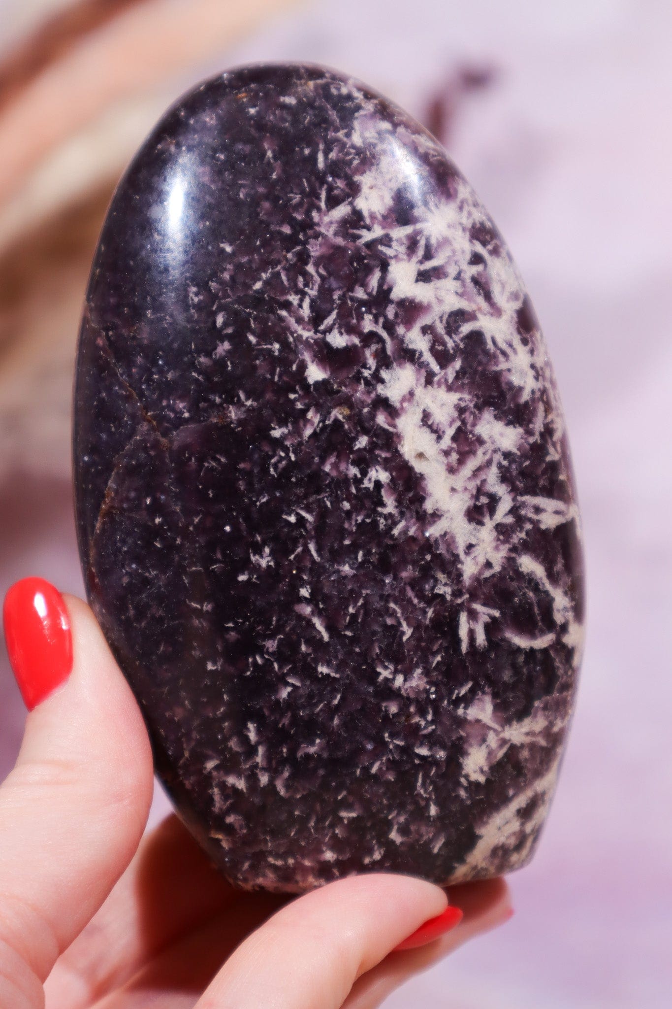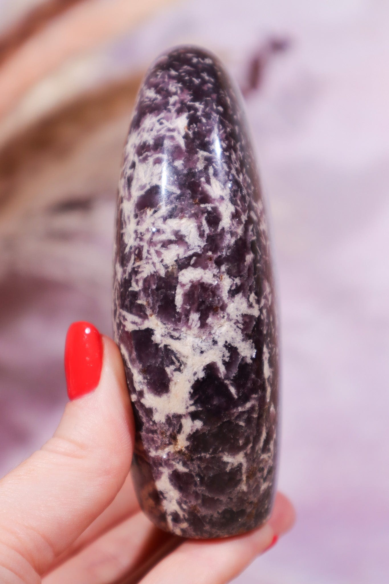 Formed in the depths of the Earth, Lepidolite derives its name from the Greek word "lepidos," meaning scale, due to its scaly appearance.