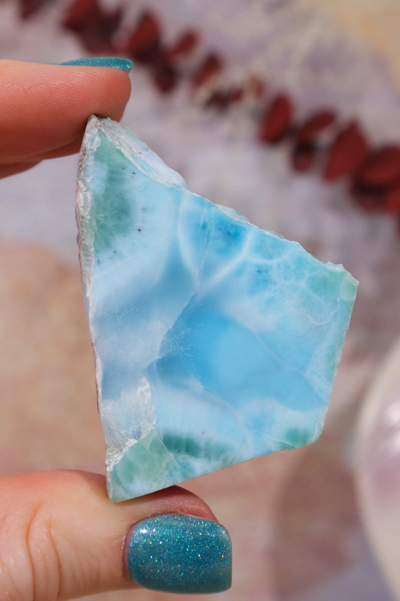 Larimar is an enchanting stone that stands for true, honest and heartfelt communication. Known for promoting a connection to feminine power and divine feminine energy, it supports states of confidence, relaxation, and emotional release.