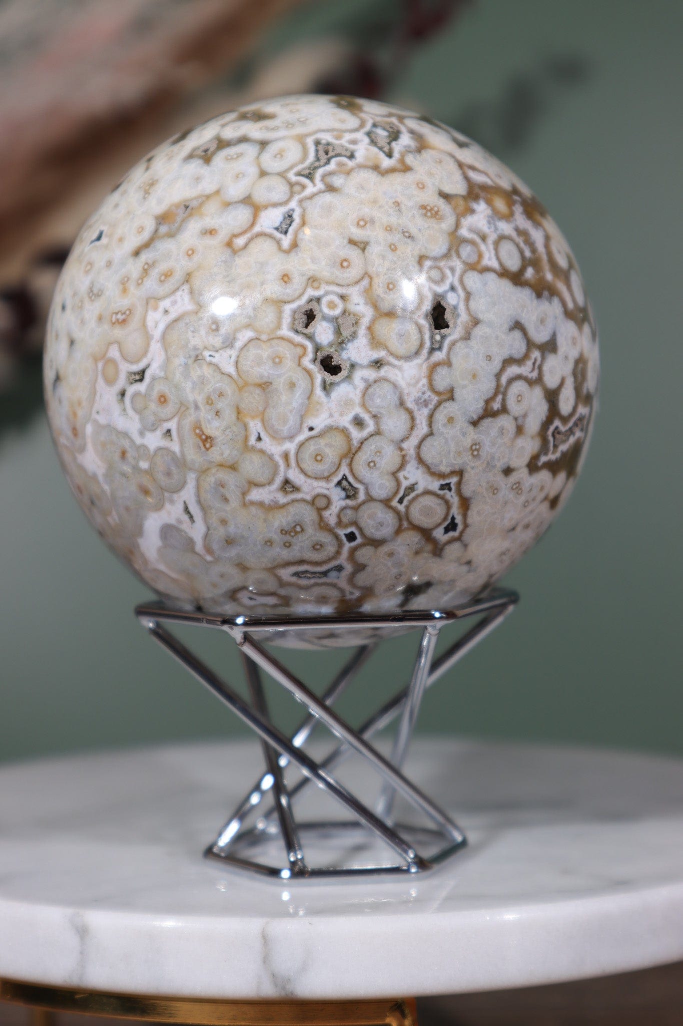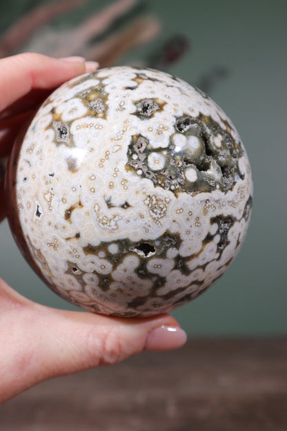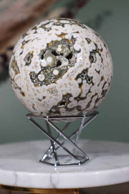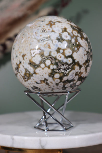Ocean Jasper, also known as Sea Jasper, is a captivating variety of Jasper renowned for its intricate patterns reminiscent of ocean landscapes. This stunning gemstone is formed through a combination of volcanic activity and sedimentation, resulting in its unique orbicular formations. Found along the rugged coastlines of Madagascar, Ocean Jasper derives its name from its resemblance to the ocean's serene beauty.
