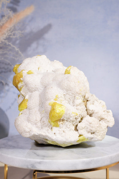 Spiritually, Sulphur is linked with the Solar Plexus Chakra, enhancing personal power, confidence, and vitality. It resonates strongly with the fiery energy of the Sun, making it an ideal stone for those seeking to ignite their inner fire and overcome obstacles with courage and determination. Sulphur is associated with the zodiac sign Leo, symbolising strength and leadership. When used in crystal healing practices, Sulphur is believed to promote physical vitality, mental clarity, and emotional balance. Incorporate Sulphur into your spiritual practice to harness its potent energy and awaken your inner flame.