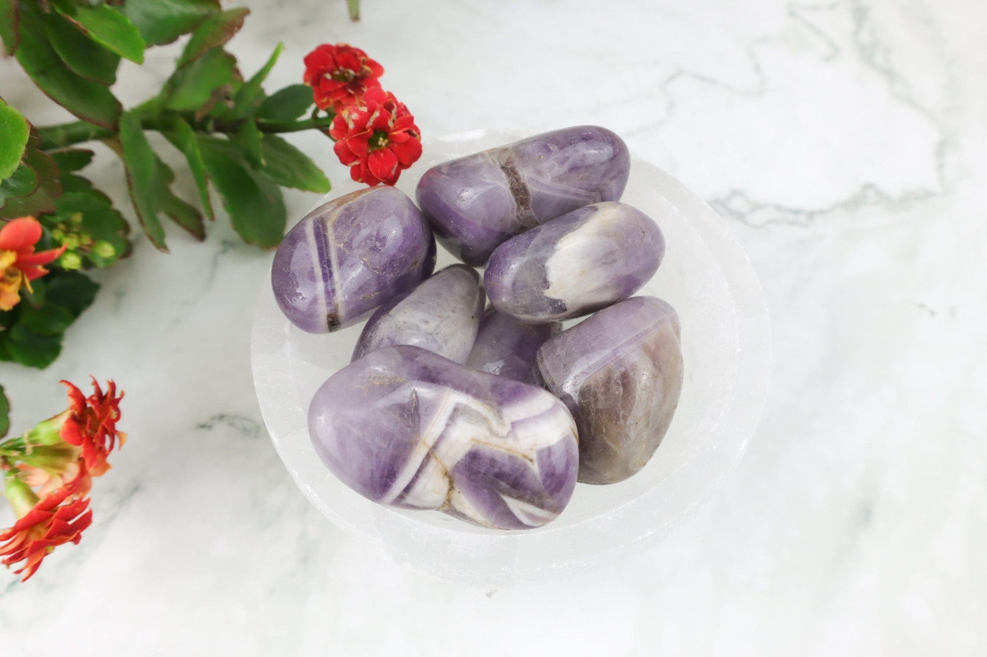 Amethyst has a natural calming and soothing effect, helping you achieve a balanced and focused mindset. This semi-precious stone has a huge list of benefits - and is particularly useful to keep nearby or in your palm to ease tension.