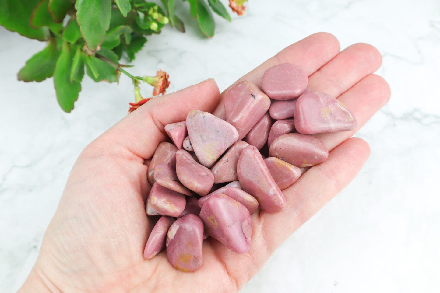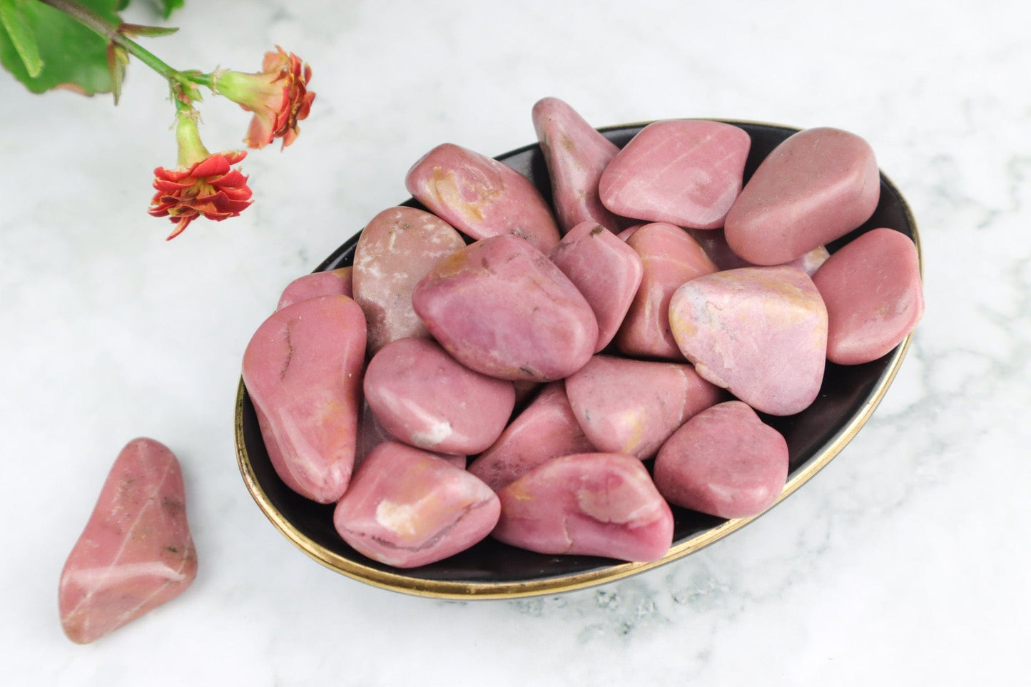 Rhodonite, derived from the Greek word "rhodon," meaning rose, is a stunning pink to red mineral prized for its heart-healing properties and distinctive appearance.