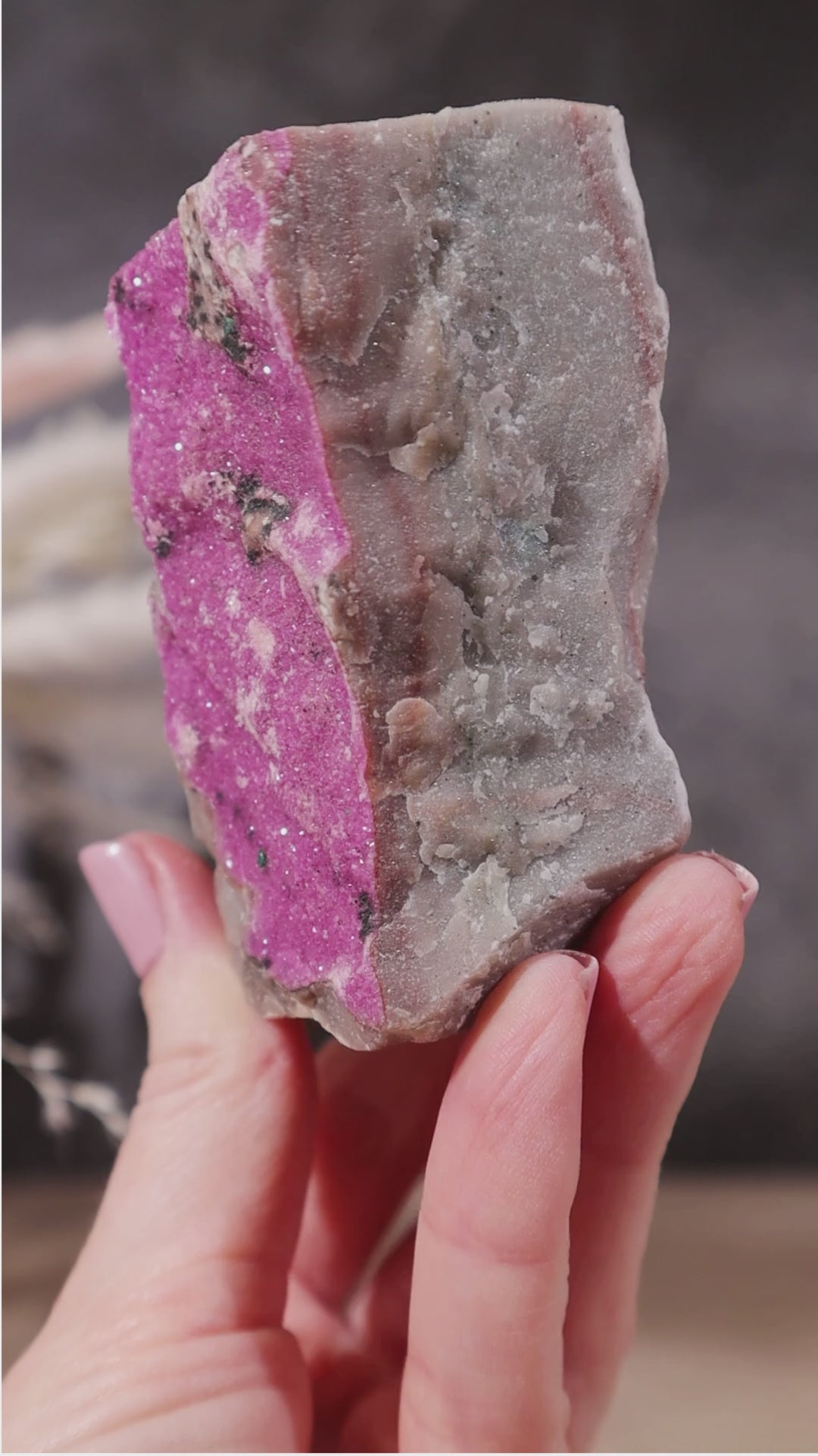 Cobalto Calcite, also recognized as Cobaltoan Calcite or Aphrodite Stone, is a unique variation of Calcite infused with Cobalt impurities. The intensity of its pink hue is typically determined by the concentration of Cobalt.