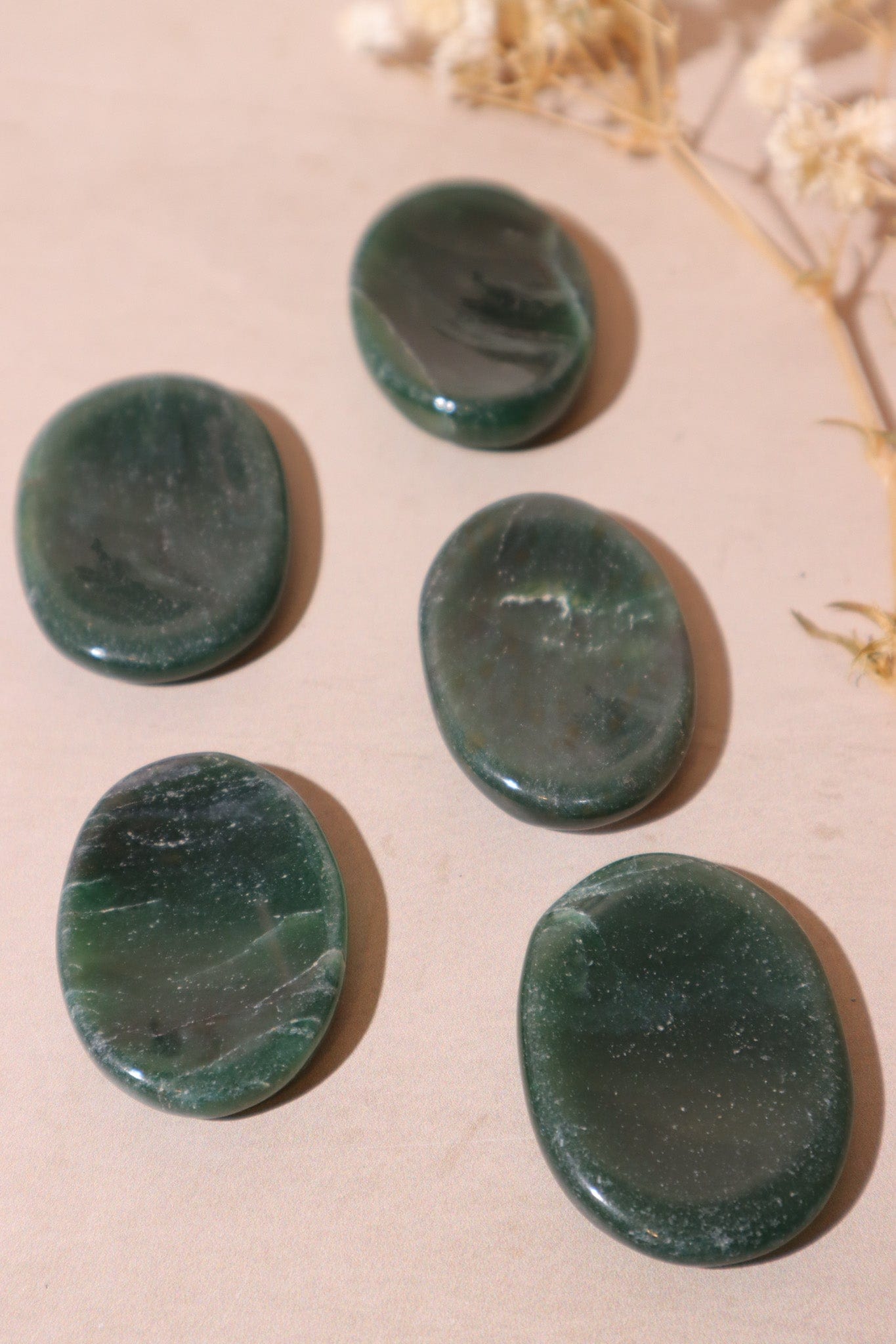 Its name is derived from the Italian word "a ventura," meaning "by chance," owing to the accidental discovery of aventurescence in glass during the 18th century. This stone forms within quartz, resulting in various shades of green, from deep emerald to soft mossy tones. The green colour of Aventurine comes from the presence of microscopic inclusions of Fuchsite, Chromium, Hematite or other green minerals within the quartz, which give it its distinctive hue.