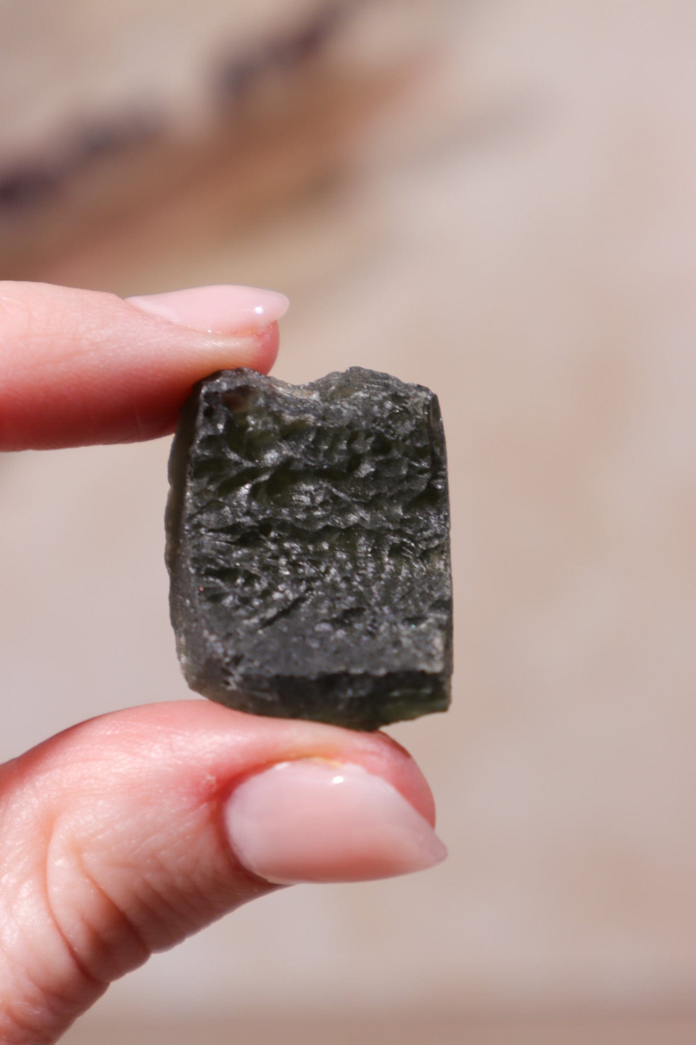 Moldavite, also called Vltavin, is a tektite or "terrestrial debris" that found its way onto Earth after a meteoric explosion about 15 million years ago at the Nördlinger Ries Crater. The gorgeous texture of Moldavite is a result of pervasive etching by naturally occurring CO2 and humic acids present in groundwater. Spiritually known as the ‘The stone of transformation’, Moldavite is a stone that finds you when you are ready for the next step in your life's journey. This tektite drives you to dive deep within yourself and affords you the ability to observe with clarity and purpose.