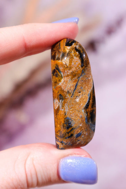 Formed through a dance of minerals and water within the Earth's crust, Pietersite is a remarkable fusion of energy. Pietersite forms through hydrothermal processes involving hot mineral-rich solutions that circulate through rock cavities. As these solutions interact with cavity walls, minerals like quartz begin to precipitate and crystallise, layer by layer. The unique and vibrant patterns of Pietersite result from the presence of mineral inclusions, such as crocidolite or hawk's eye, which create distinct colour variations and chatoyancy. Geological forces and movements further shape the arrangement of mineral crystals, contributing to Pietersite's intricate appearance. Over millions of years, these processes solidify, yielding the stunning and dynamic gemstone admired for its exceptional beauty. Named after Sid Pieters, who discovered the stone in Namibia in 1962.