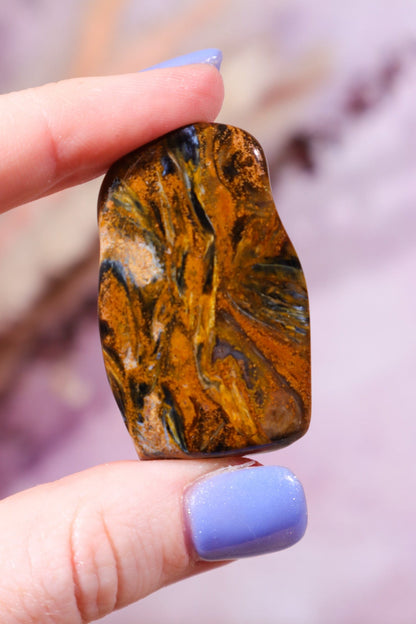 Pietersite, a wondrous gem born from the forces of nature, radiates an aura of transformation and inner strength. The unique and vibrant patterns of Pietersite result from the presence of mineral inclusions, such as crocidolite or hawk's eye, which create distinct colour variations and chatoyancy.