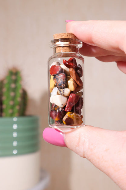 Other Characteristics: Mookaite is often characterised by its vibrant and earthy colours, ranging from deep reds to mustard yellows and earthy browns, with intricate patterns and bands.