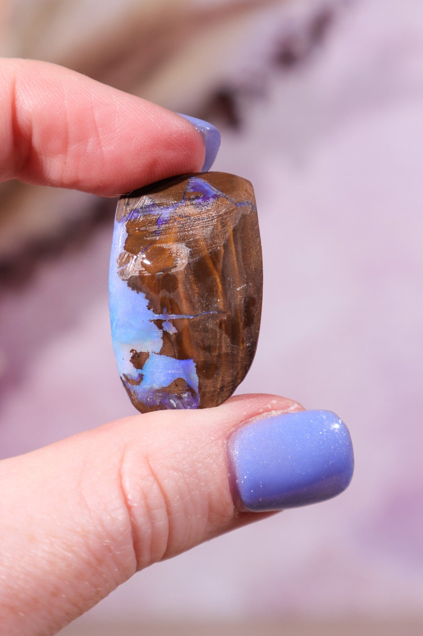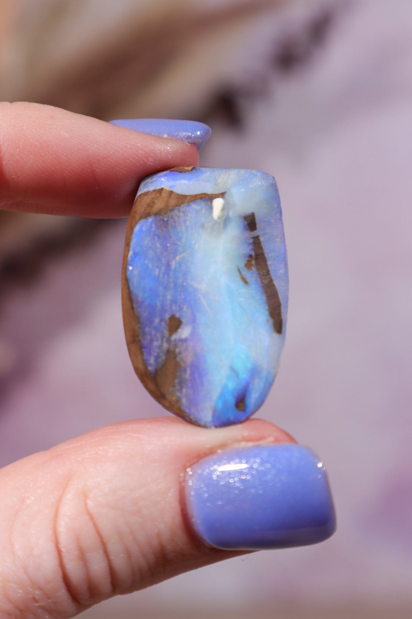 Please note: We show the Boulder Opal both dry and wet to show the difference in colour strength