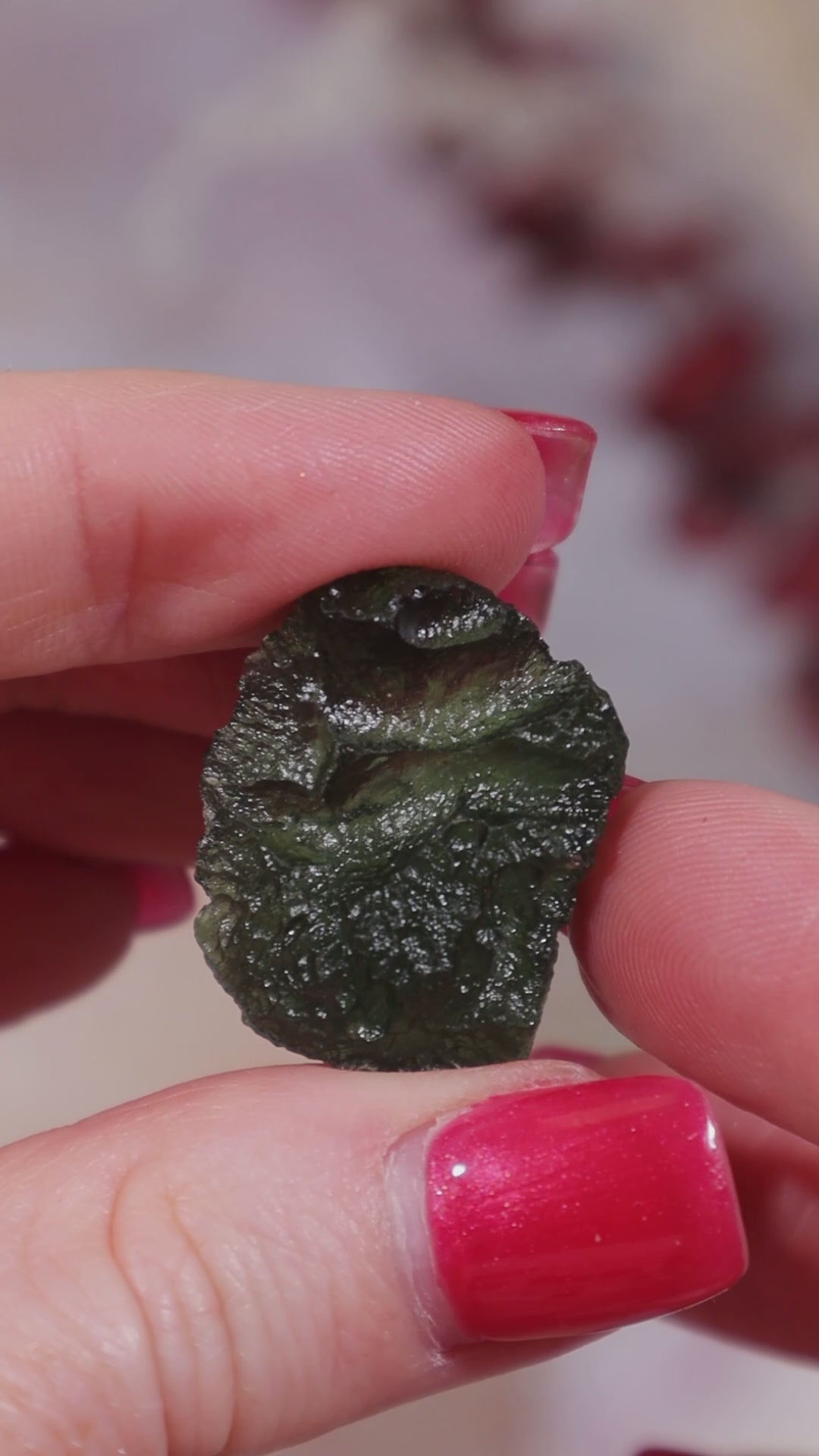 Moldavite, also called Vltavin, is a tektite or "terrestrial debris" that found its way onto Earth after a meteoric explosion about 15 million years ago at the Nördlinger Ries Crater. The gorgeous texture of Moldavite is a result of pervasive etching by naturally occurring CO2 and humic acids present in groundwater. Spiritually known as the ‘The stone of transformation’, Moldavite is a stone that finds you when you are ready for the next step in your life's journey. This tektite drives you to dive deep within yourself and affords you the ability to observe with clarity and purpose.