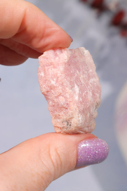 Thulite is a striking pink variety of Zoisite, formed through the geological process of metamorphism, where intense heat and pressure alter existing rock formations. Thulite has been treasured for its energetic and aesthetic appeal, believed to inspire joy and confidence. Spiritually, this vibrant pink crystal resonates with the Heart and Throat Chakras, promoting self-love, emotional healing, and clear communication.